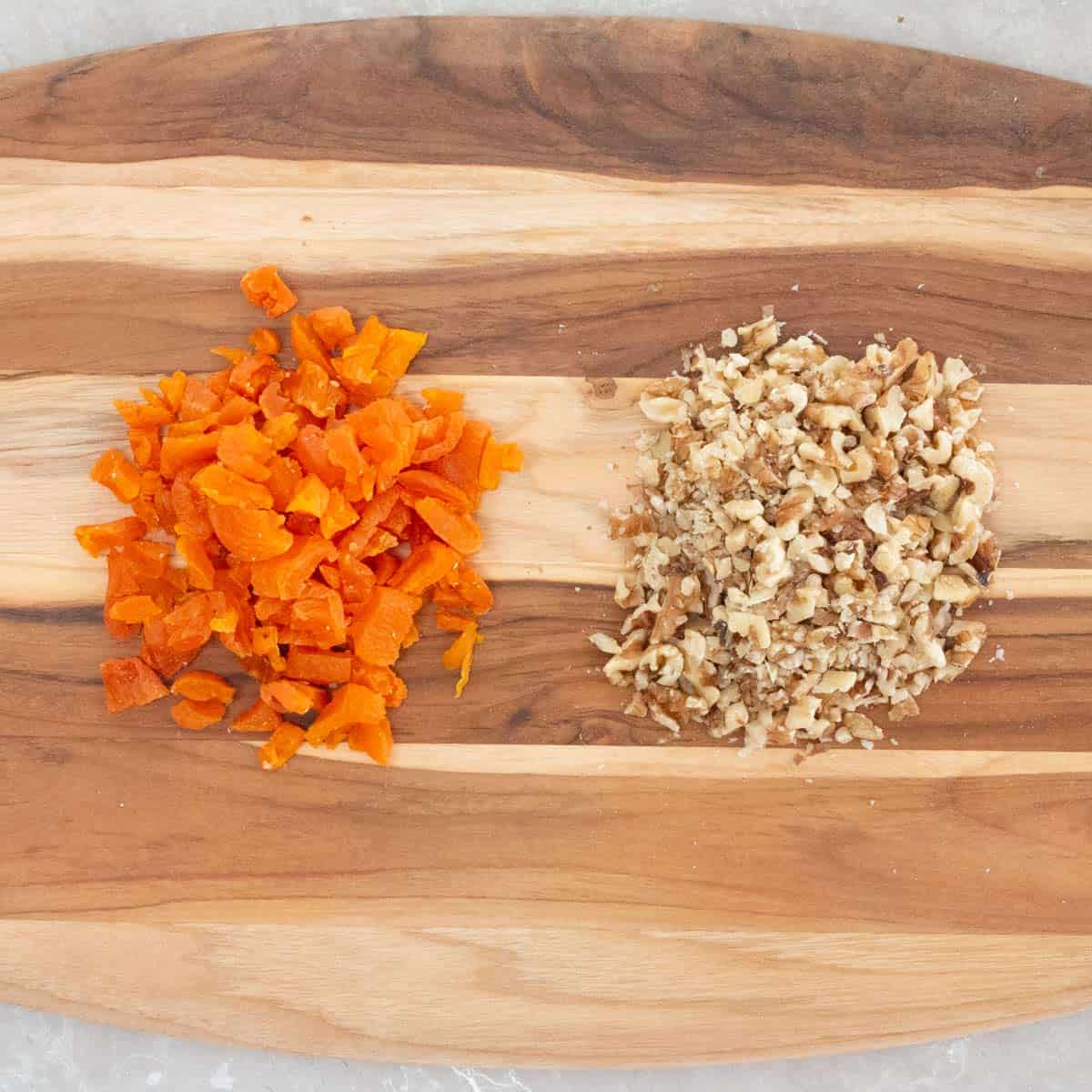 Step 5: Chop dried apricots and walnuts in to small pieces.