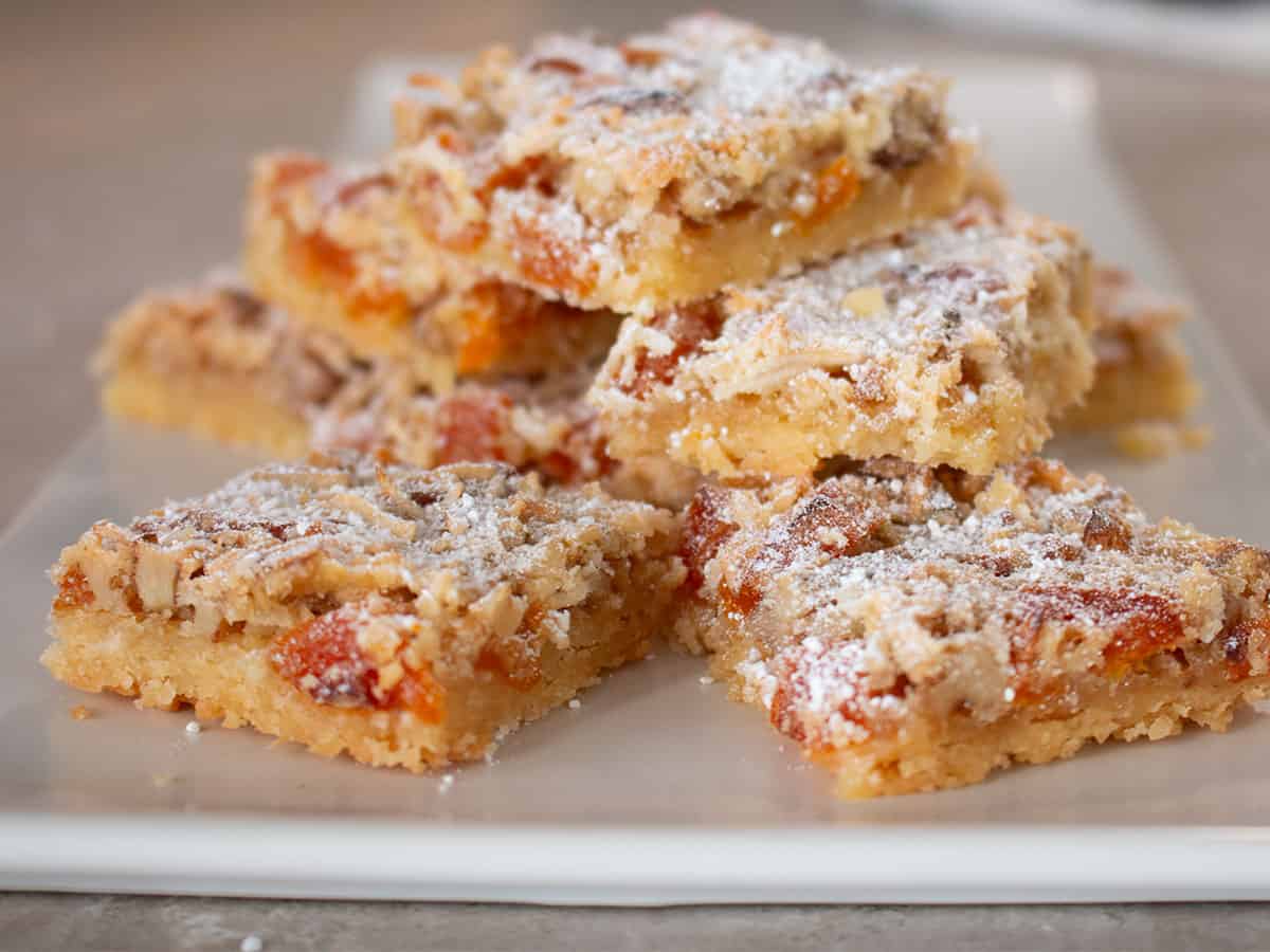 Apricot & Walnut Slices pilled up on a white plate